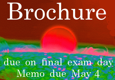 Visual Argument due on Final Exam day. Worth 20% of your grade: 15%